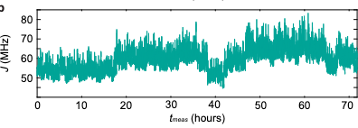 \Delta F = \frac{\delta \phi^2}{2} = \frac{1}{2} \left(\pi \frac{\delta J}{J_0}\right)^2If you have an exchange coupling of 50 MHz, hitting your target phase takes a gate time of roughly 10 ns. If the J shifts by just 2 MHz, your phase error is about 0.13 radians, which translates to about 1%.